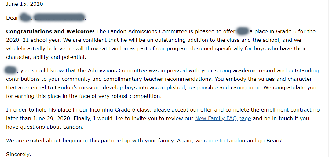 金同學(xué)從小學(xué)二年級(jí)開始就移民澳大利亞,在四年的海外生活中,雖剛開始難以適應(yīng)國(guó)外的純外語環(huán)境,但經(jīng)過刻苦的練習(xí)外加家教英語老師的嚴(yán)加調(diào)教,最后不但克服了英語口語的障礙,更成為學(xué)校的celebrity student。金同學(xué)剛開始答題思路不是很清晰,外加上申請(qǐng)期間要搬家到美國(guó)去,故我們的文案老師就見縫插針地為孩子提供面試輔導(dǎo),爭(zhēng)取在正式面試前讓孩子對(duì)面試題目做到胸有成竹。國(guó)外的教育經(jīng)歷使得推薦信書寫成了難題,學(xué)校規(guī)定老師不得出具書面的推薦信。鑒于這種情況,我們的文案老師努力與申請(qǐng)學(xué)校保持頻繁溝通,向其詳細(xì)闡述具體情況,最后申請(qǐng)學(xué)校同意以電話的形式向金同學(xué)所在的澳大利亞公立學(xué)校了解金同學(xué)的表現(xiàn),學(xué)校給予金同學(xué)的高度贊揚(yáng)也讓美國(guó)學(xué)校對(duì)孩子刮目相看。最后,孩子優(yōu)秀的表現(xiàn)以及我們共同的努力成功幫金同學(xué)獲得多所學(xué)校的Offer。