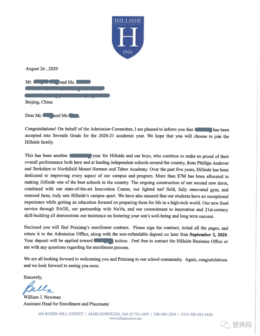 留美網(wǎng)丁同學(xué)被希爾賽德學(xué)校錄取展示~