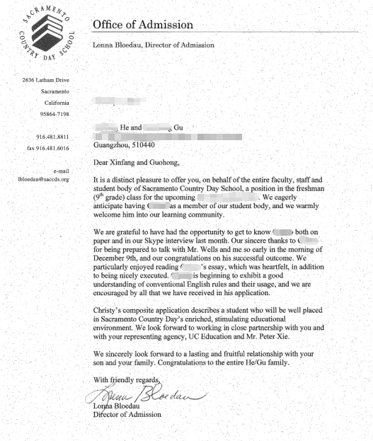 錄取院校:薩克拉門托貴族學(xué)校Sacramento Country Day School等