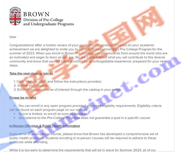 留美網(wǎng)喜報頻傳,恭喜留美網(wǎng)D同學(xué)斬獲布朗大學(xué)夏校錄取offer~!
