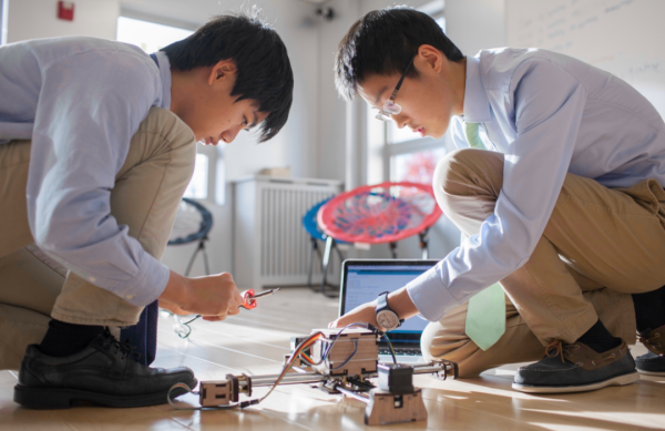 iLab還向?qū)W生介紹機(jī)器人世界。通過(guò)使用Tetrix Max和Ev3系統(tǒng),男孩們協(xié)作構(gòu)建、編程和指揮機(jī)器人。隨著機(jī)器人從單個(gè)部件進(jìn)化成一個(gè)功能單元,學(xué)生們欣賞這個(gè)過(guò)程,并最終慶祝這個(gè)結(jié)果。