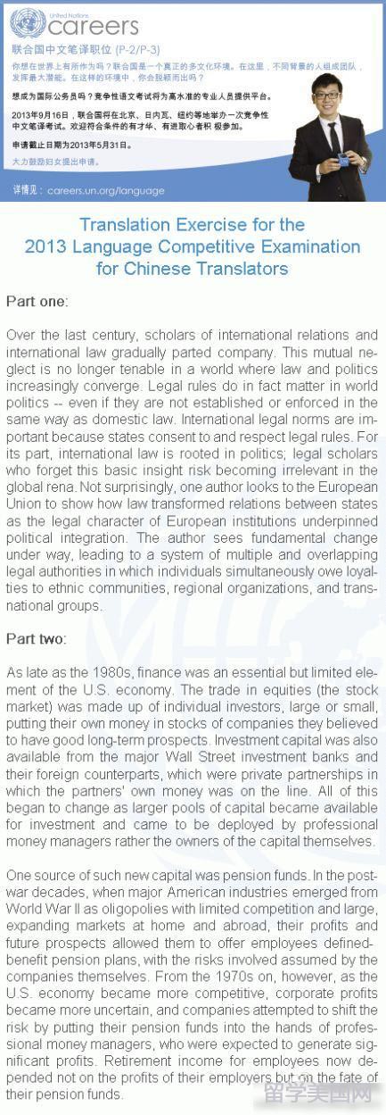 美國(guó)就業(yè)機(jī)會(huì):聯(lián)合國(guó)招中文筆譯職位