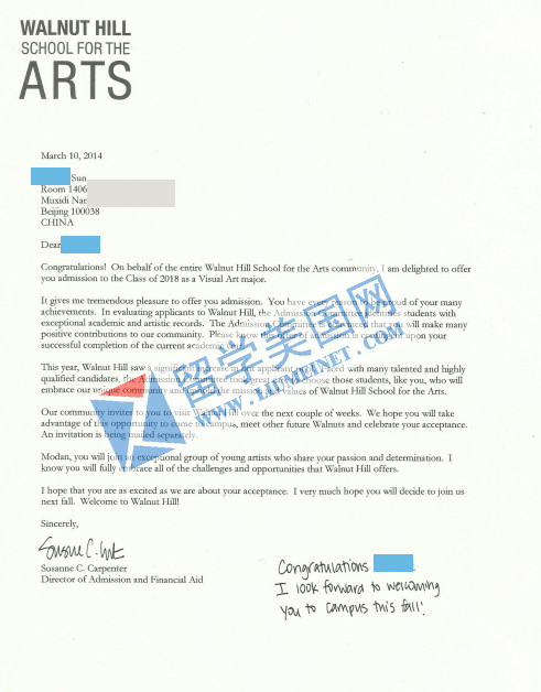 13年7月申請(qǐng),爭(zhēng)取到美國(guó)頂尖藝術(shù)高中秋季入學(xué)!