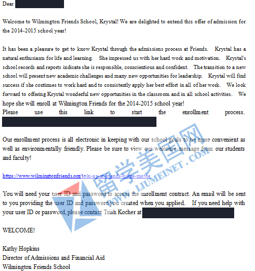 申請成功與否,面試是關(guān)鍵。許同學(xué)口語雖然不錯,不過培訓(xùn)絕對不可小覷。一著不慎,則導(dǎo)致滿盤皆輸。經(jīng)過幾次的嚴(yán)格培訓(xùn),終于迎來了威名頓的面試通知。面試后學(xué)校說周五給結(jié)果。當(dāng)時所有的人都懷著緊張而又期待的心情等待著。那天是我們的周六,雖然不上班,可是我們一大早就迫不及待的打開電腦。學(xué)校發(fā)來了錄取通知!這個好消息太讓人振奮了,我們立即通知了家長。雖然隔了很遠(yuǎn)的距離,但喜悅把我們緊緊連在了一起!