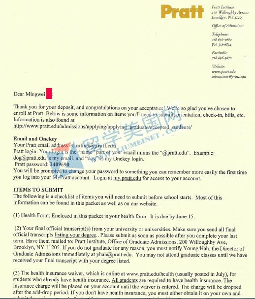 附普瑞特大學(xué)錄取信:
