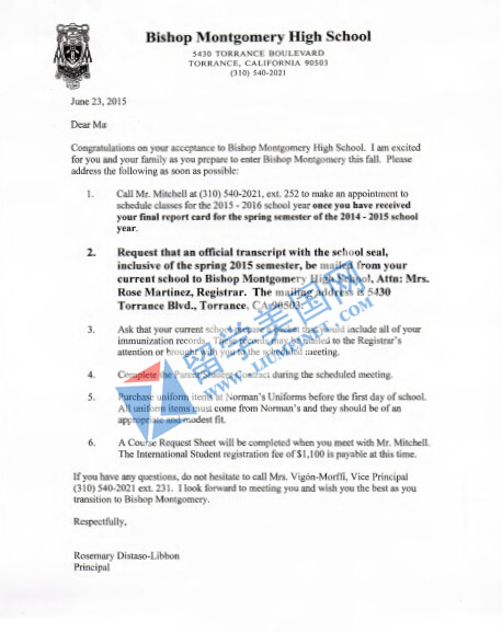 恭喜馬同學(xué)獲加州主教蒙哥馬利中學(xué)錄??!