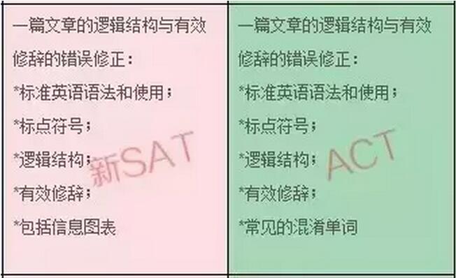 新SAT的語(yǔ)法部分的題型和ACT的語(yǔ)法部分非常類似,雖然新SAT的語(yǔ)法部分增加了圖表題,但從出題形式到考點(diǎn)上來(lái)說(shuō),這兩者非常相似。