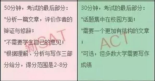 新SAT作文考試時(shí)間50分鐘,ACT作文考試時(shí)間40分鐘,都是選考內(nèi)容。