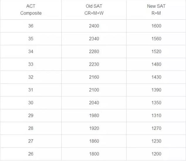 選擇新SAT還是ACT?通過(guò)以下4個(gè)步驟+上圖分?jǐn)?shù)換算表,或許你會(huì)知道自己在哪種標(biāo)化考試中更具競(jìng)爭(zhēng)力!
