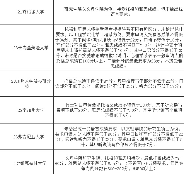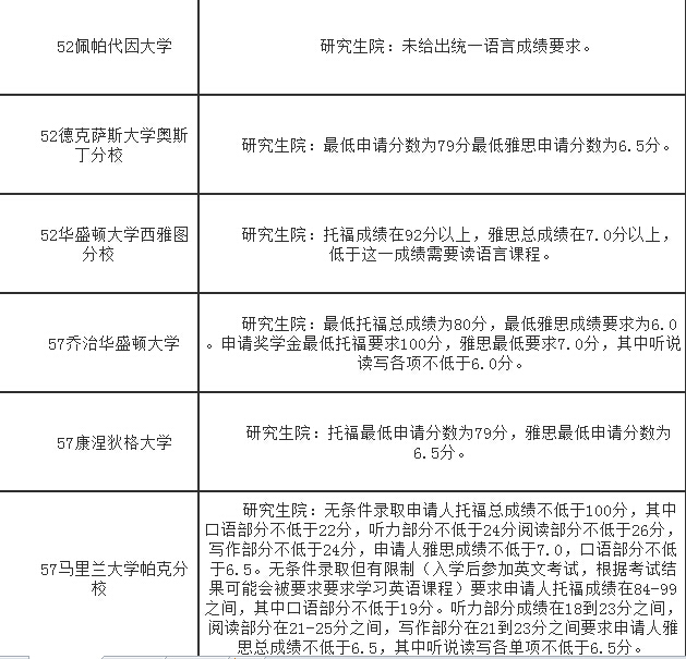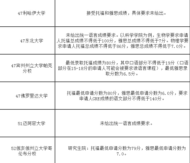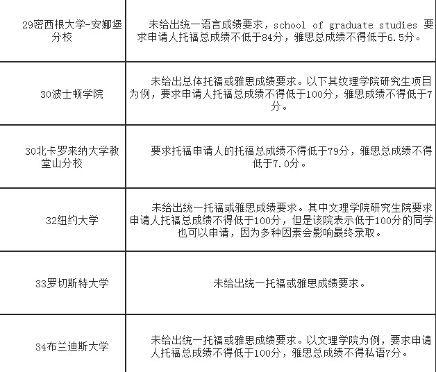 2017年美國TOP100大學研究生最低語言要求!(上)