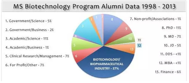 喬治城大學(xué)生物技術(shù)碩士項(xiàng)目1998年-2013年的就業(yè)情況