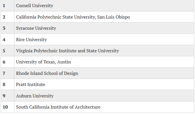 附錄:2017年美國(guó)大學(xué)建筑專業(yè)排名TOP10