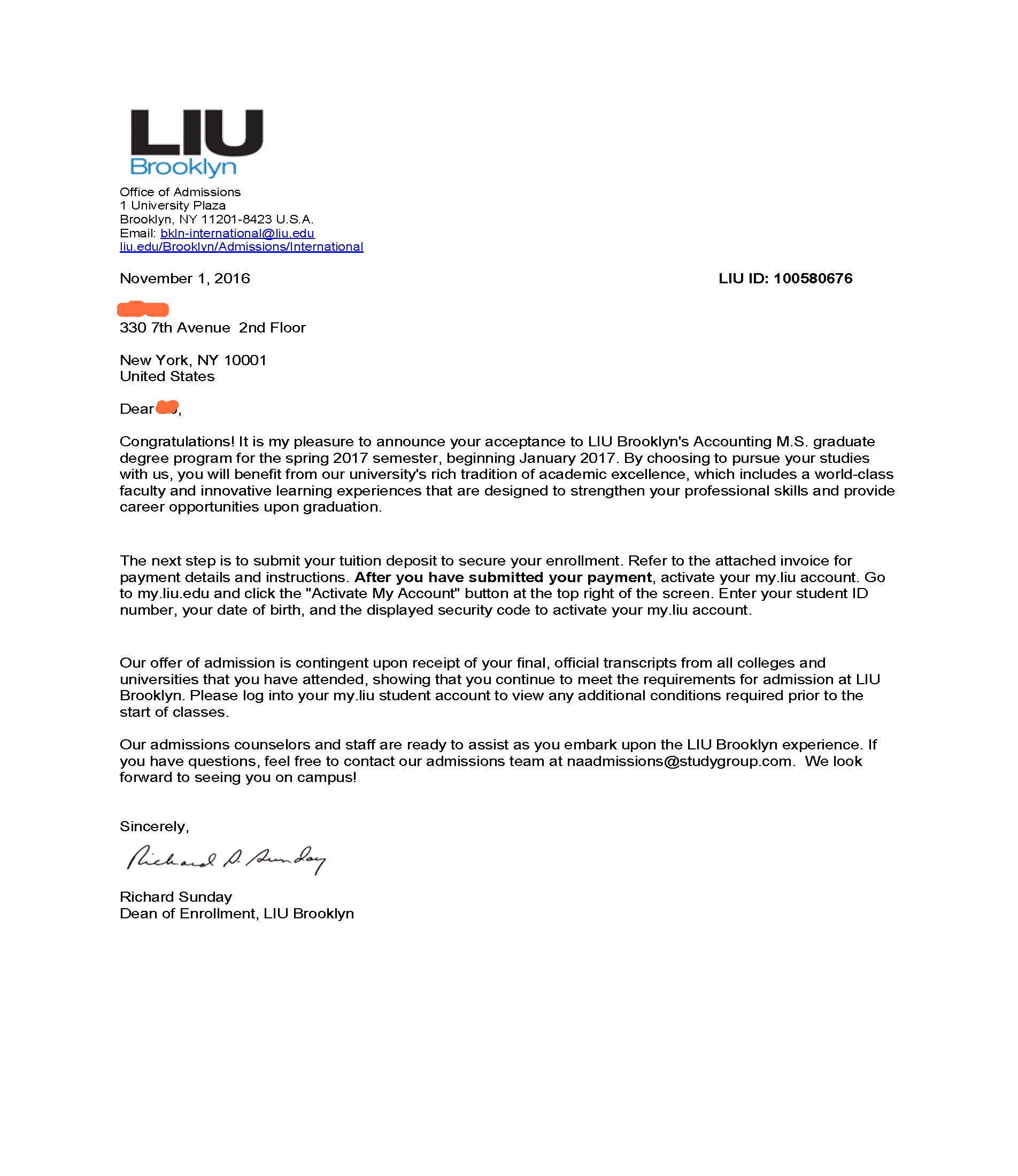 恭喜尹同學(xué)被長(zhǎng)島大學(xué)錄取