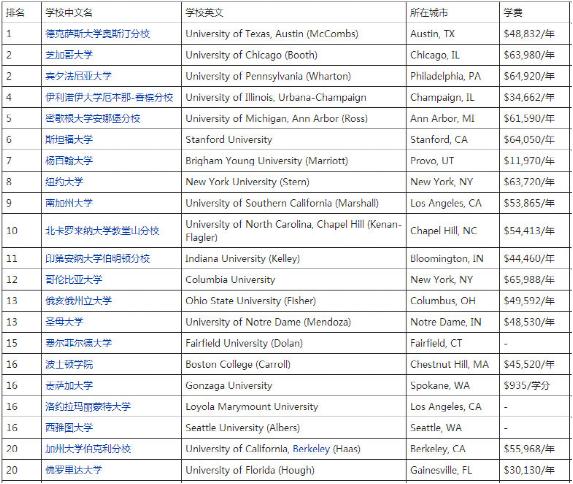 2017年美國USNews會計專業(yè)最新TOP20排名