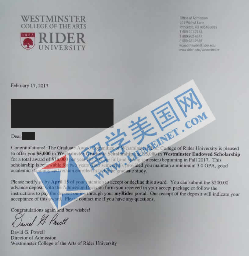 錄取院校:WESTMINSTER CHOIR COLLEGE OF RIDER U.