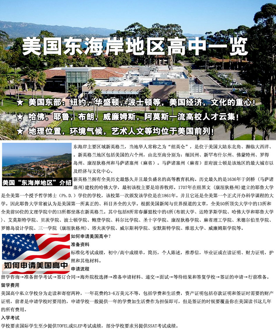 2013年美國東海岸地區(qū)高中一覽