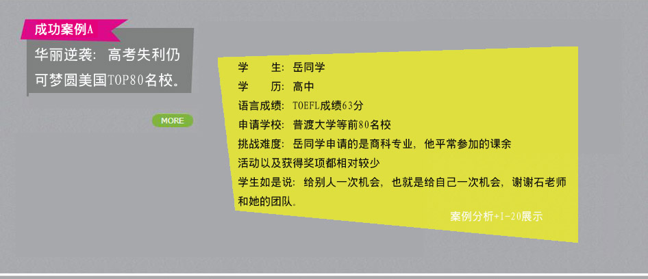 ---------當(dāng)然可以,一個(gè)月拿到美國(guó)著名大學(xué)OFFER,90天到美國(guó)大學(xué)開始?jí)粝雴⒊蹋?/span>