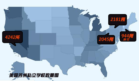 高性價(jià)比的高中的標(biāo)準(zhǔn) 美國(guó)私立高中非常多,僅僅一個(gè)加州就有4000多所私立學(xué)校(如右圖),選 校是一項(xiàng)“大工程”,找到一所性價(jià)比很高的學(xué)校是很多家長(zhǎng)的訴求。那么什么樣的學(xué)校算是“性價(jià)比”很高的學(xué)校呢?下面是留學(xué)美國(guó)網(wǎng)為朋友們推薦高性價(jià)比高中的幾點(diǎn)標(biāo)準(zhǔn),供參考。