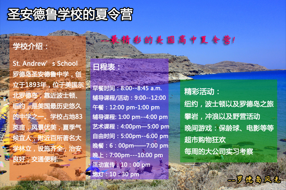 目前美國共有236寄宿高中提供暑期課程summer programs,同學們的選擇還是很大的,下面留學美國網(wǎng)推薦幾所寄宿高中的暑期課程給大家如有意申請,可以與我們聯(lián)系,3月免費申請*哦!