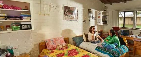 學(xué)生都住在校園里,兩個(gè)學(xué)生共享一個(gè)房間,兩房套間內(nèi)有一個(gè)公用洗手間。每一位中國學(xué)生分配一位講英語的室友。學(xué)校供應(yīng)學(xué)校有機(jī)菜園種植的有機(jī)蔬菜,果園種植的水果,以及牧場(chǎng)養(yǎng)殖的牛肉。