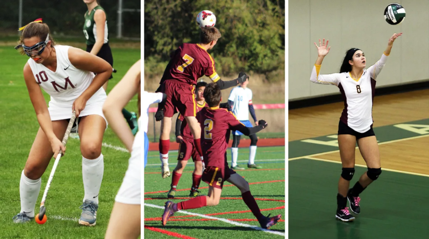 羽毛球, 棒球, 籃球, 船員, 越野, 賽馬場曲棍球, 高爾夫, 曲棍球, 足球, 壘球, 游泳, 網(wǎng)球, 田徑, 終極飛盤, 排球, 冬季徑跡, 摔跤