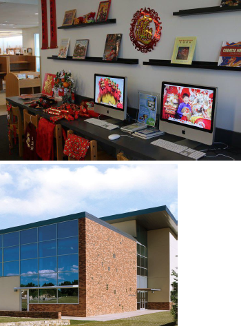 擁有2 萬(wàn)5 千本藏書,先進(jìn)的藝術(shù)科學(xué)實(shí)驗(yàn)室,美麗的社區(qū)活動(dòng)中心,Wyly 藝術(shù)表演中心等。無(wú)線網(wǎng)絡(luò)全校園覆蓋,每個(gè)高中生配備一臺(tái)筆記本電腦,以便校內(nèi)外的使用。應(yīng)用平板電腦、iPads、 iPod touches、照相機(jī)和3D打印機(jī)。