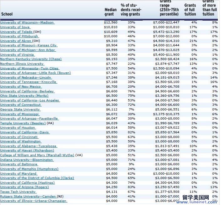 下面是美國公立綜合類大學(xué)的獎學(xué)金發(fā)放·排名,供大家參考: