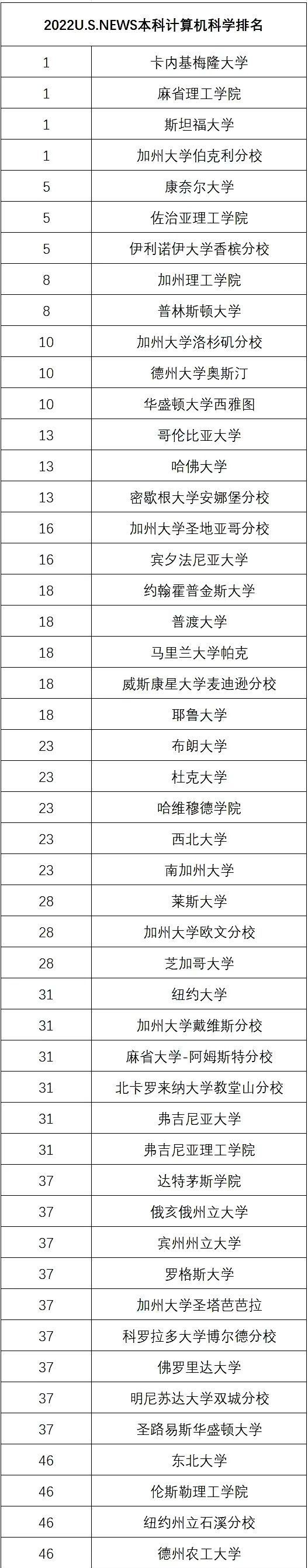 2022年USNews本科最佳計(jì)算機(jī)專業(yè)排名!